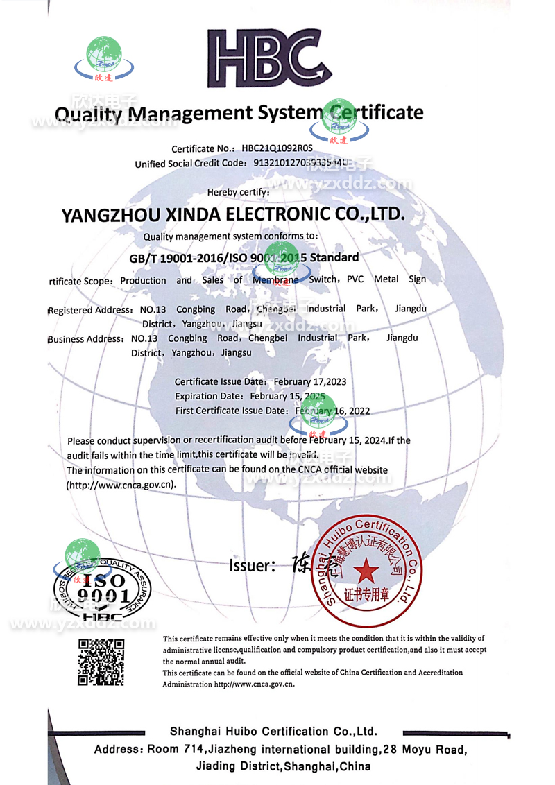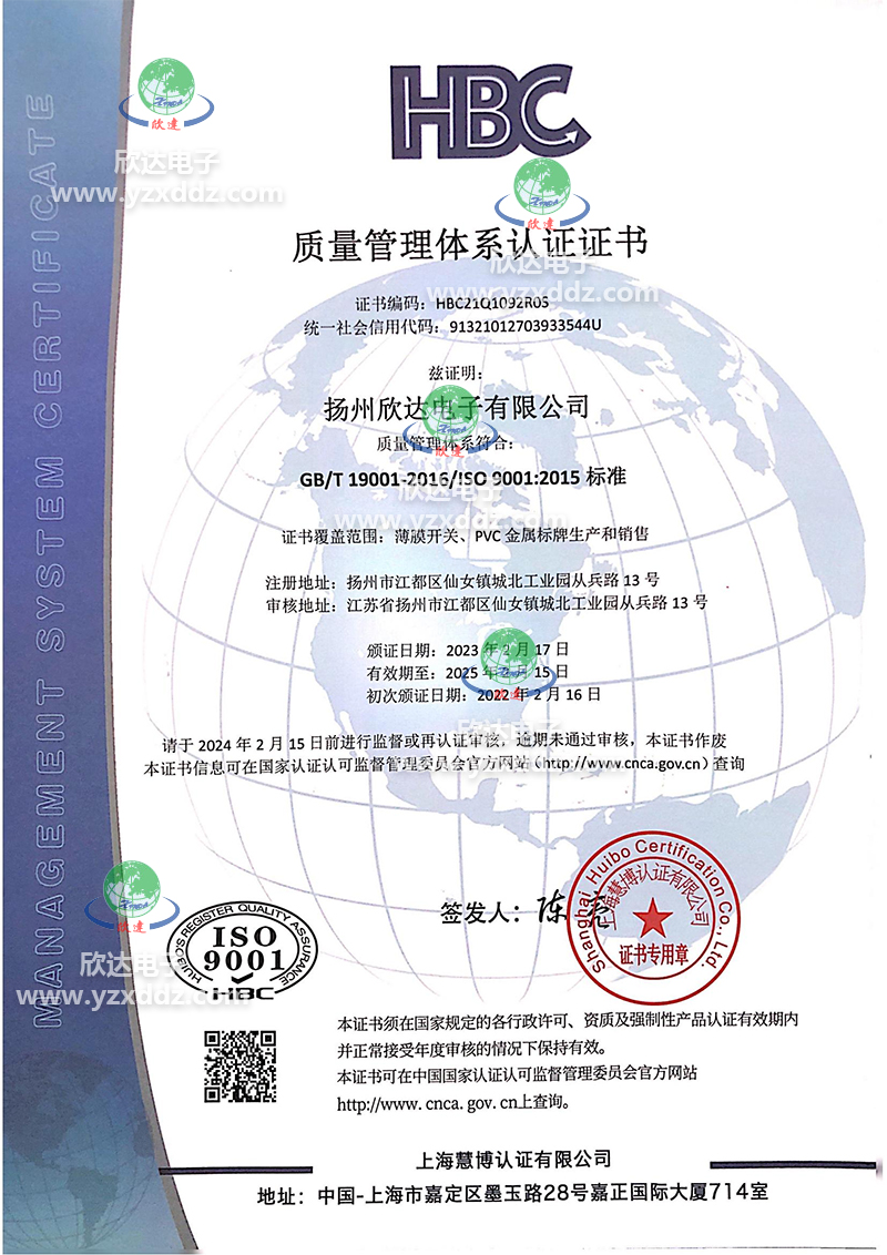 揚(yáng)州欣達(dá)電子有限公司是一家從事電子輕觸薄膜開關(guān),薄膜面板及PVC、金屬標(biāo)牌,不干膠貼,噴塑、烤漆絲印面板等各種絲印工藝的有限責(zé)任公司。公司位于風(fēng)景秀麗的文化名城江蘇揚(yáng)州市江都區(qū)。自1993年建廠以來(lái),我們致力于信譽(yù)至上,顧客為首的原則,及時(shí)為廣大客戶提供合格滿意的產(chǎn)品:堅(jiān)持著質(zhì)量為首,持續(xù)改進(jìn)的方針,狠抓品質(zhì)管理,取得了客戶的認(rèn)可:履行著誠(chéng)信、互惠的宗旨,贏得了客戶的支持和信任。目前公司擁有先進(jìn)的絲網(wǎng)印刷設(shè)備,熟練的業(yè)務(wù)技術(shù)骨干和嶄新適用的廠房,每年為全國(guó)各地的客戶提供數(shù)億的合格產(chǎn)品。我們把“誠(chéng)信、務(wù)實(shí)、求精、創(chuàng)新”作為我們的企業(yè)宗旨,在經(jīng)營(yíng)管理中貫徹“以人為本,精益求精”的經(jīng)營(yíng)理念;在生產(chǎn)管理中嚴(yán)格按ISO9001質(zhì)量體系落實(shí)生產(chǎn); 在為客戶服務(wù)過(guò)程中按照產(chǎn)品的分類提供多種設(shè)計(jì)方案,讓我們產(chǎn)品更好體現(xiàn)客戶的理念。...